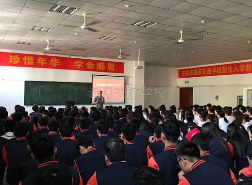 2017年9月27日、28日,在石家庄通用交通中等专业学校举行2017年新生入学教育“珍惜年华,学会感恩”感恩教育主题讲座。