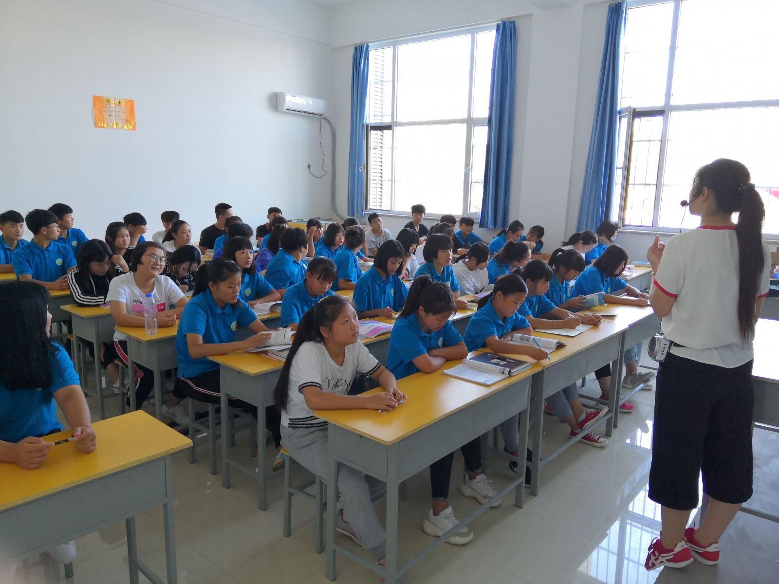 一进校门,迎面而来的是一条笔直的校道,校道左侧布置着标准的篮球场地,周围两排小树,微风吹来,小树轻轻摆动,好像在跟同学们招手。篮球场东侧是优美的小花园,北侧和西侧矗立着两栋庄严的教学楼。走过校道,穿过篮球场,透过教室明亮的玻璃窗往里看,是一张张认真的脸庞,讲台上老师的声音仿佛美妙的音乐,让同学们都沉醉在其中。