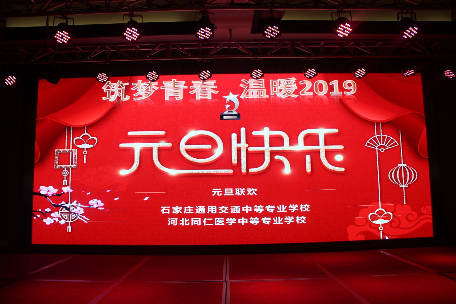 家庄通用交通中等专业学校、河北同仁医学中等专业学校元旦暨表彰大会在2018年12月24日下午14:00正式拉开帷幕。董事长王中信、校长安华,书记焦中黔,副校长丁玄记、曹起军、李晓彬、李利娜、李树法莅临晚会现场,各科领导、老师、辅导员及近两千名通用学生共同出席观看晚会。